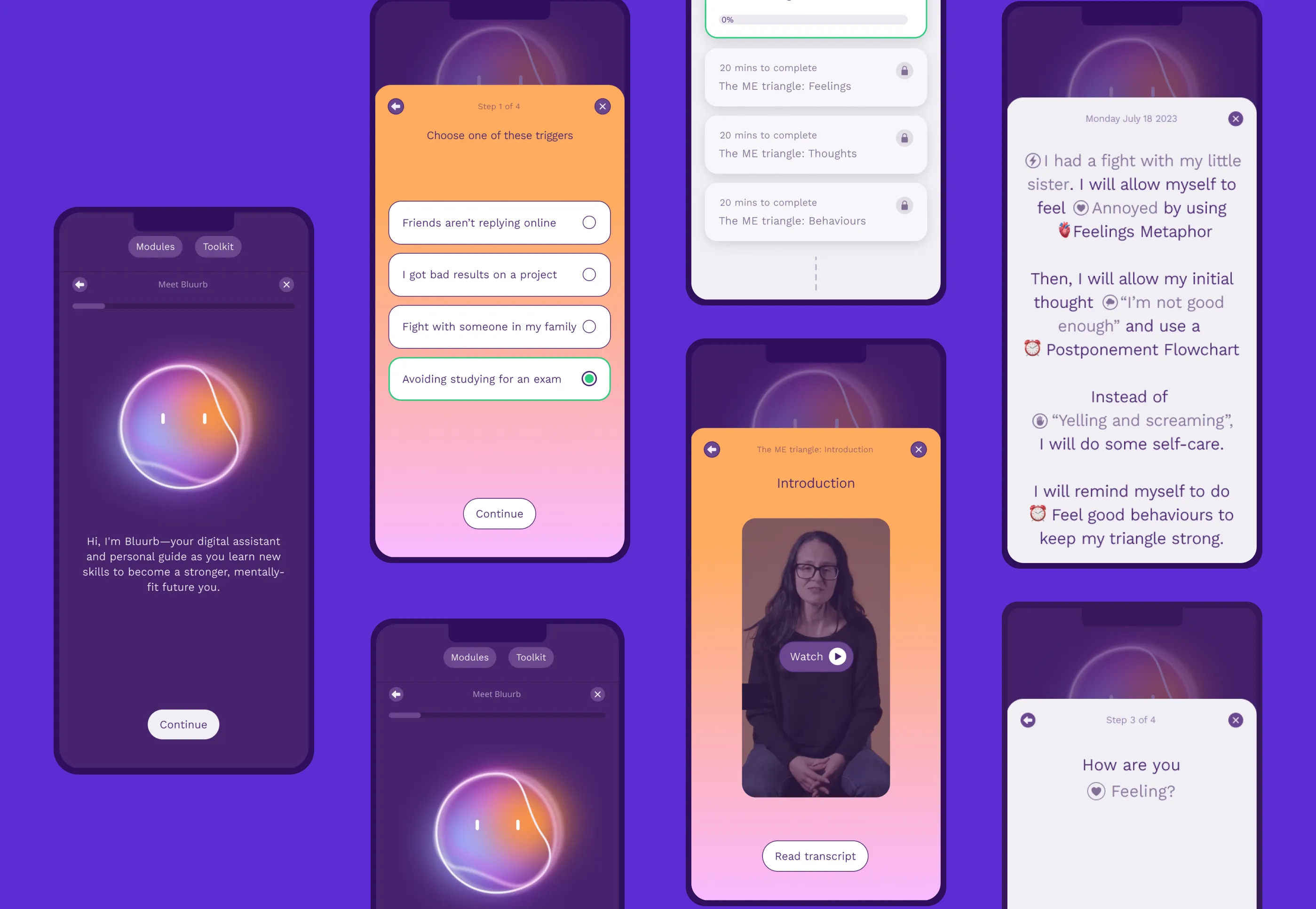 Bluurb.me makes access to learn CBT techniques free and fast—something that usually costs thousands of dollars and can take months or years to learn through traditional therapy methods.